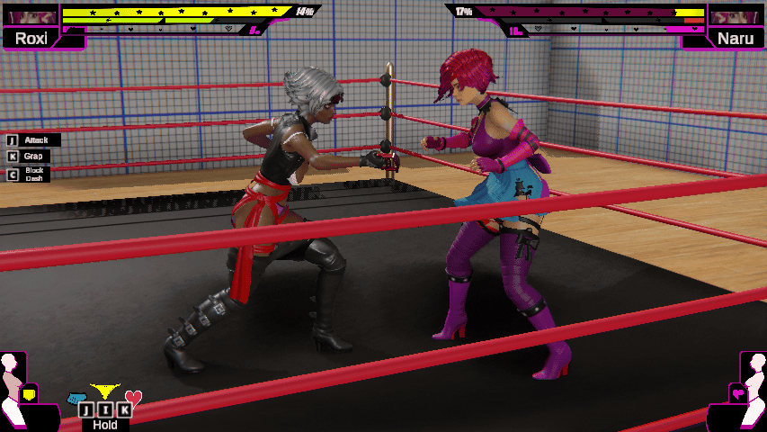 -Pinfall will always be the means to defeat you, the arousal element has not been integrated into the mechanic yet, it will fill up depending on actions, sex items and some character taunts. the arousal level will determine what actions you can take after defeating the opponent.